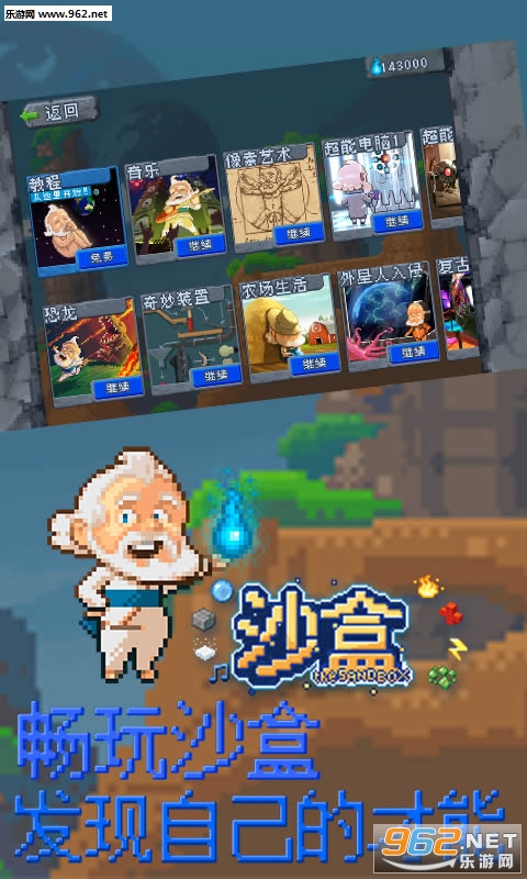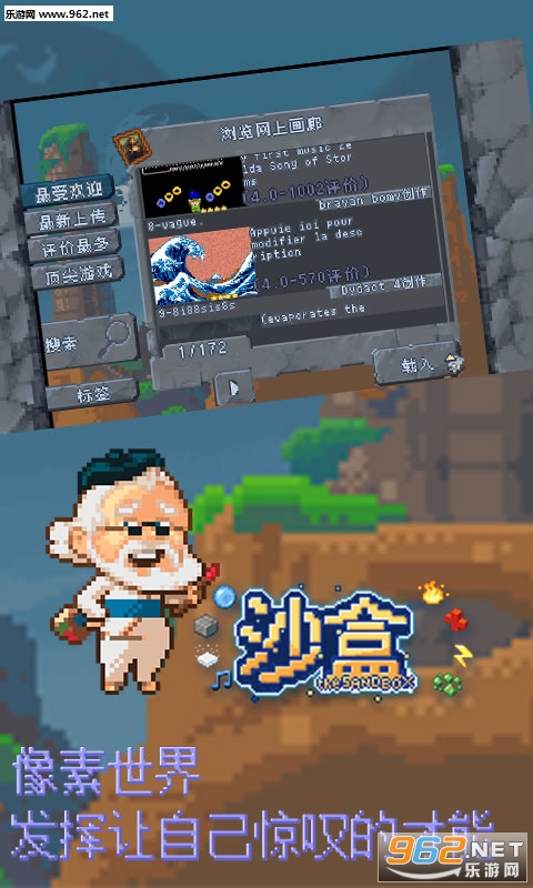 《沙盒手游中文版》这是一款好玩的像素类沙盒游戏。在这里,玩家可以使用丰富的元素创造和毁灭,通关精心设计的关卡。种植植物,开垦山脉、修建建筑等,你可以发挥的你的想象力,打造专属的个性世界。全新版本画廊功能对中国区玩家开放,感兴趣的玩家赶紧下载游戏体验吧!