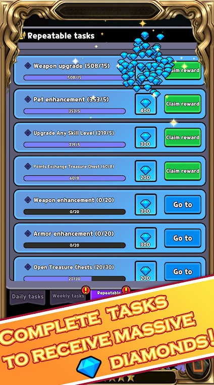 2、更多不同的任务的设置,任务下,可以开启精彩的刺激战斗。