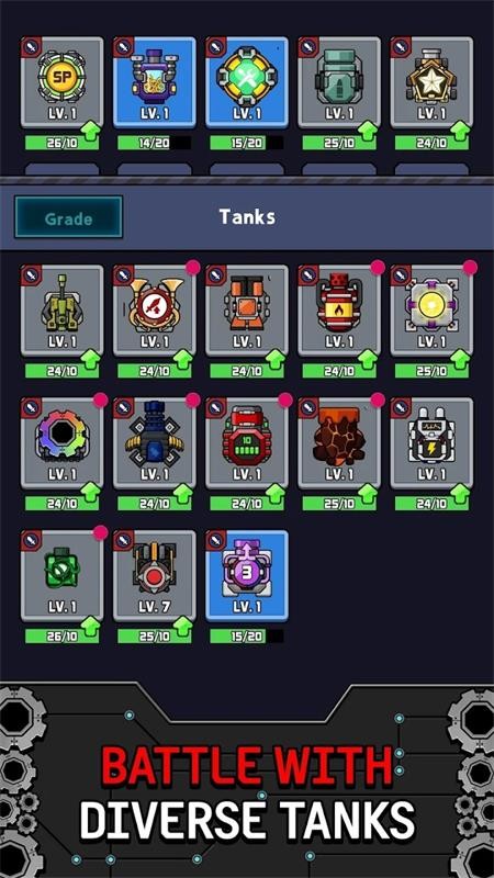1、科技感的画面色彩、炫酷的坦克解锁、有趣的背景音乐。