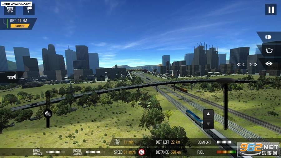 在你的旅行中,你可以欣赏到照片写实的图形,包括城市、郊区、工厂、乡村等等。每辆机车都有一个精心设计的工程师舱室,里面有工作杠杆和最大的现实主义标准。然而,你必须小心,因为你不顾一切地开车,或者太长时间地踩刹车会损坏火车。所以把你的工程师的帽子戴上,让我们开始吧!