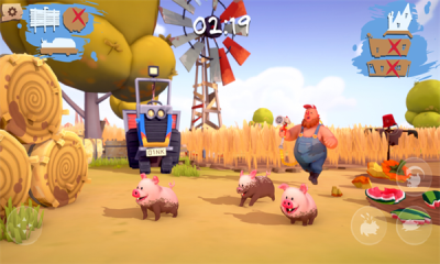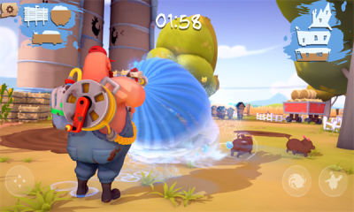 2、角色选择:玩家可以选择扮演农民或猪。农民需要使用水枪、拖把等清洁工具来清理污渍,而猪则可以使用各种手段制造混乱。