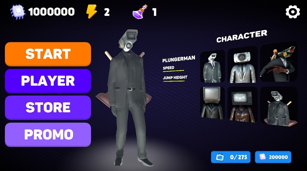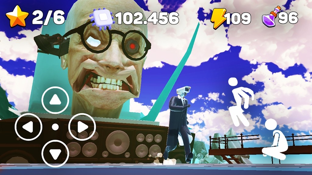 3、引入了丰富的道具系统。可收集金币和道具,用于解锁新的技能和装备。例如,马桶人可以获得飞行能力,