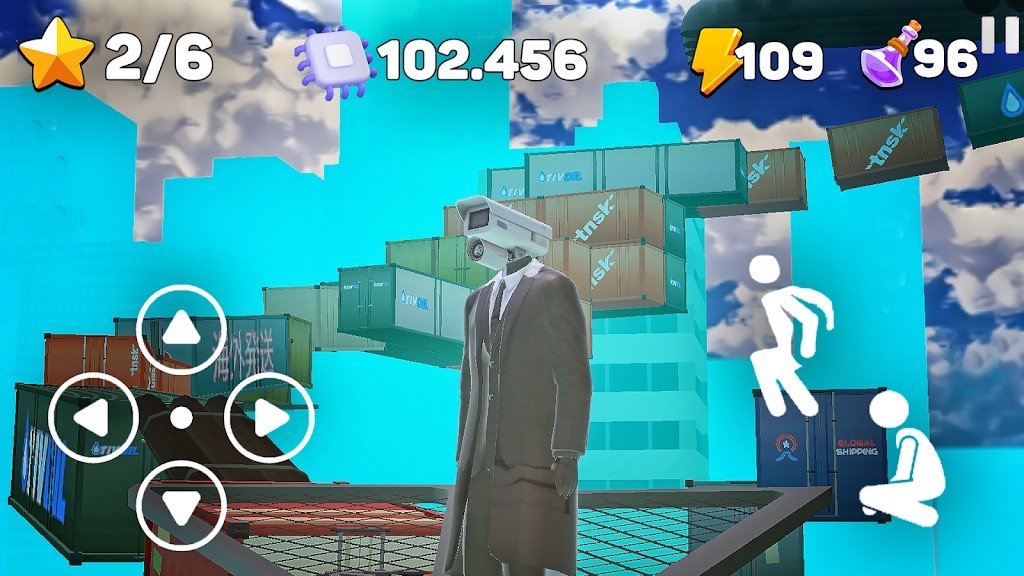 2、你需要灵活运用马桶人的特技和能力,跳跃、滑行、躲避障碍物,以最快的速度冲向终点。
