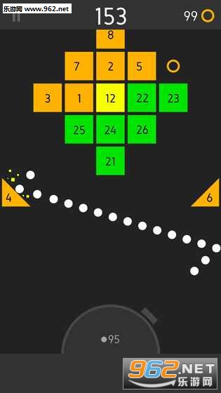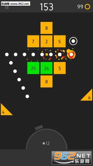 小球从下方弹射进入上部空间会发生物理弹射,上部空间中会存在许多的数字方块可以撞击,撞击过后数字也会发生变化。