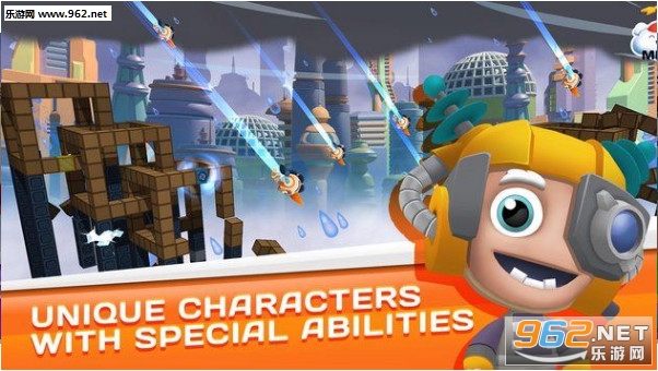 1、玩家在游戏中将操控一个通过弹弓发射的破坏小队;