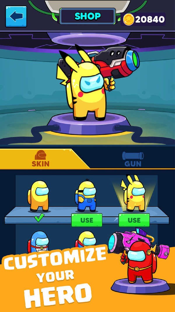 1、多个不同的太空狼人可以操控去进行你战斗,将所有的小人都消灭完成关卡。