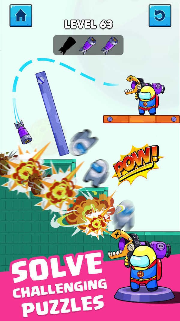 2、激情四溢的挑战任务等你去尝试,丰富的火箭筒射击关卡需要击败所有的小人。