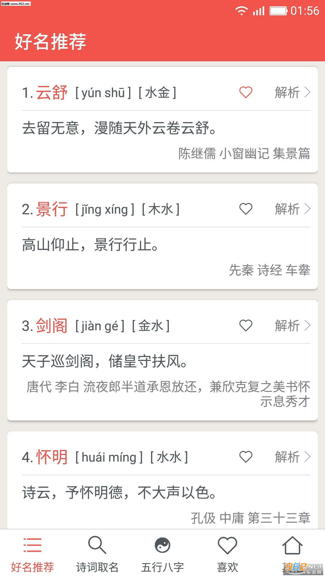 从诗词歌赋,经史子集,经典名著中取名起名,每个名字都有出处,意境好,音韵美,拒绝重名俗名。