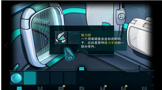 3、系统会提示你打开右边的储物柜把储物柜的2个东西(晶体转换夹,强力钳)拿到背包。