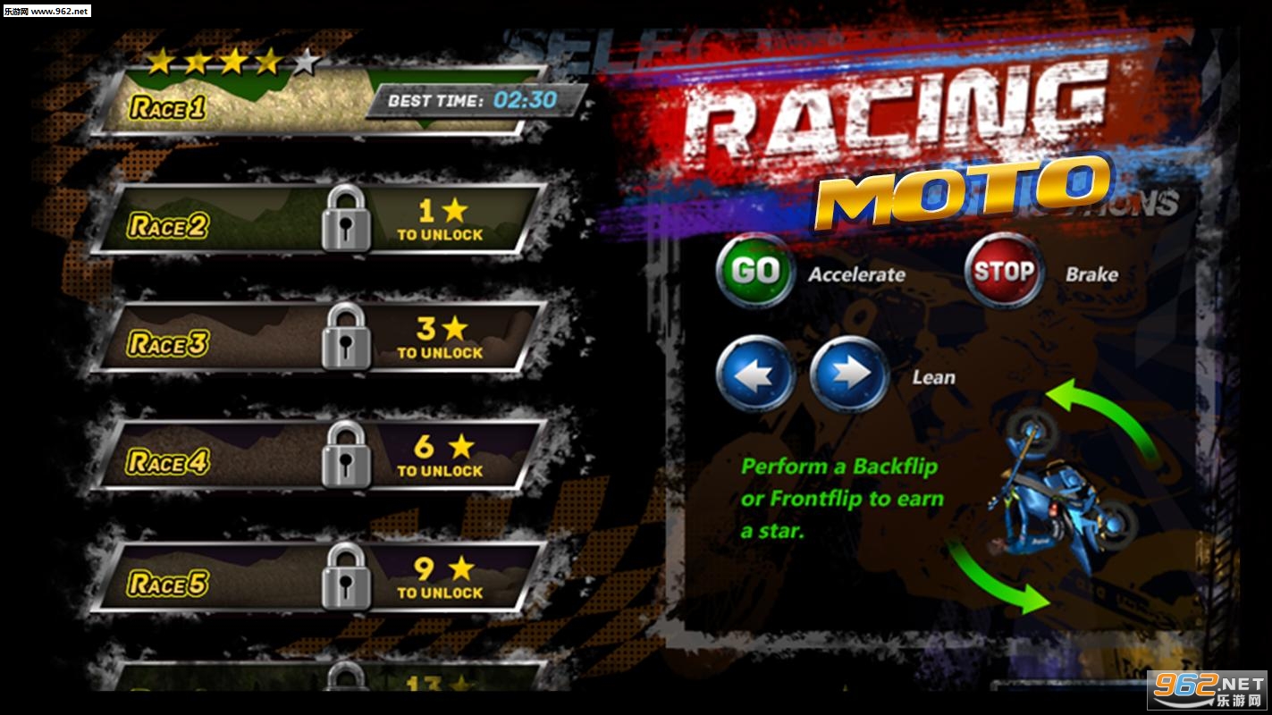 《赛车摩托安卓版》(Racing Moto)顾名思义就是以摩托车为竞速工具的游戏,它跟赛车游戏体验差别还是挺大的,摩托车在很多方面都跟s赛车越野竞技有关,极个别并不全是跟赛车游戏样式体验速度与激情的快感,这款游戏集合了各种极高难度的摩托车空翻特技,各种挑战,真人版哦,喜欢刺激游戏来下载!