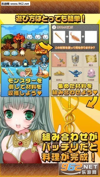 1.在野外打倒各类怪物,获得道具与素材