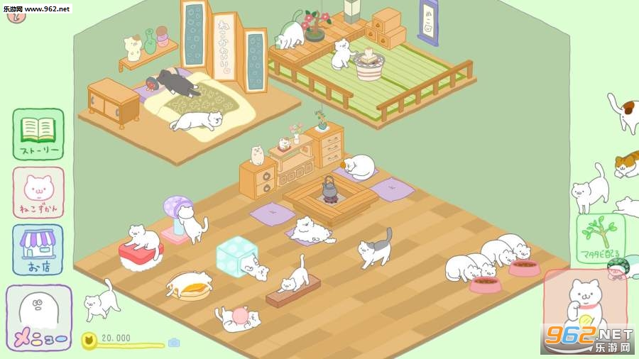 《身为幽灵的我依然是个猫奴汉化版》是一款很有趣的养成游戏,主人公意识到自己变成幽灵后居然能跟一只猫生活在一起,游戏中你需要给猫买道具新房等物品,收集稀有猫,这对于猫奴来说有什么是收集稀有猫不能替代的呢,快来下载试试吧!