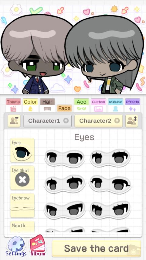 角色定制功能:通过选择或自定义角色的面部特征、发型、服装等,Poca Mate帮助你轻松塑造出心目中的二次元角色形象。无论是甜美可人的少女,还是帅气逼人的少年,甚至是奇幻世界的神秘生物,都能在这里找到归属。