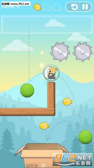 游戏目标是帮助一只呆萌小猫安全地回到她的纸箱子中(你知道猫咪最爱住在纸箱子里了~)。为了达到这个目标,你可以移动场景中的数个反弹球来将从上方落下的猫咪反弹到纸箱中,同时猫咪落下的位置也是由你来决定的。在反弹猫咪的过程中,你不能让她碰到那些锋利的齿轮,同时还要让她吃到场景中的小鱼。