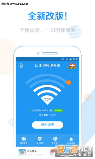 《WiFi信号增强器安卓版》这是一款好用的WiFi信号增强软件。这款手机软件自带增强信号、释放内存、优化管理等功能,能够增强使用中的WiFi信号30%以上的效果,不论是旅游出行,还是家庭自用,都能帮助你解决问题。有需要的用户可以下载WiFi信号增强器APP体验!