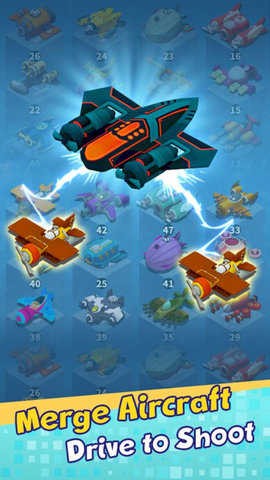 1、玩家可以通过合成来升级自己的战机,相同的战机能够合成一个更强的战机;