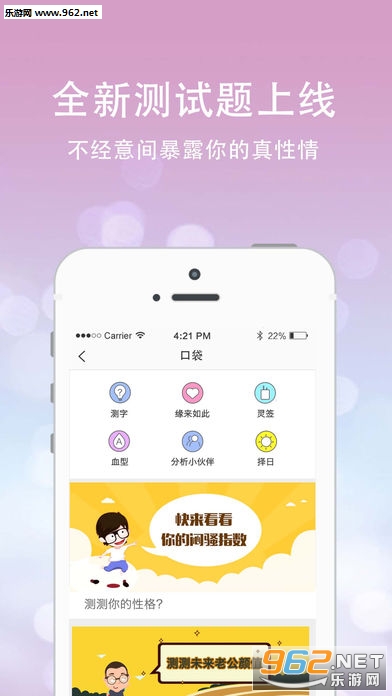 《口袋神婆安卓版》这是一款好用的手机算命软件。用户可以通过这款APP,让胖子乐大师为你解读每日运势,生肖配对等。每日运势播报以及吉日提醒,还有趣味测试题、生辰密码大解密、星宿配对连连看等趣味玩法。感兴趣的用户可以下载口袋神婆APP!