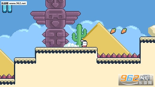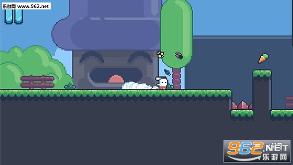《耶!小兔子》的画面采用2D横版屏幕呈现,并以时下很流行的像素画风进行了渲染,使得游戏的复古感十足。此外,简单的场景和淡蓝色的背景也让本作看起来很舒服,像素画面自带的粗糙感也不是非常明显,而且还一只活泼可爱的小白兔可以操控,对于喜欢这类复古画面的玩家来说是一个不错的选择。