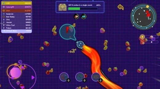 1、避免碰到自己的尾巴或者其他的蛇,不然游戏就结束了。