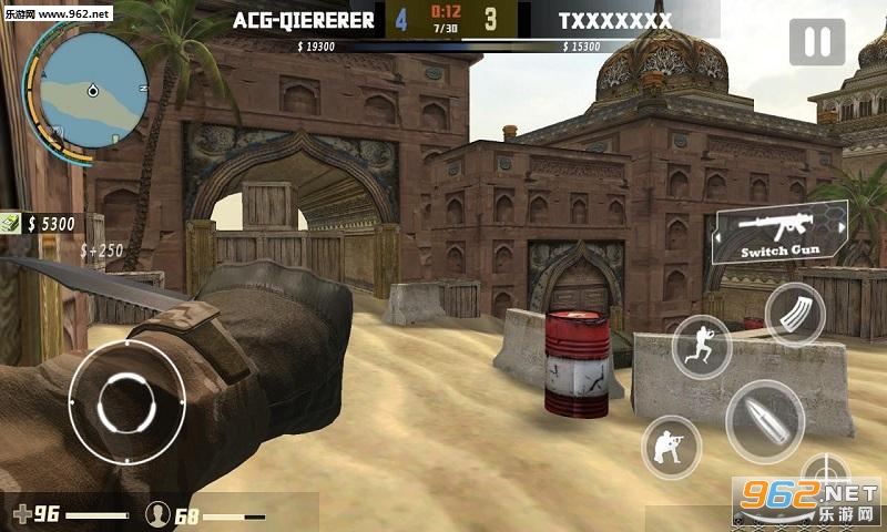 进入游戏后,我们将直接进入战场,大家可以选择四个不同的场景去完成任务,而且四个场景都是直接解锁的,我们可以自由选择。选择好挑战的地图后,我们就可以进入关卡挑战了,每一个地图都有很多关卡,大家可以一一去挑战。进入游戏后,我们将以第一人称视角进行战斗,屏幕左下角有一个虚拟腰杆,用手指滑动可以控制主角走位,右下角则有攻击按钮、换弹夹按钮、下蹲按钮、更换武器按钮、手雷、血包等。用右手手指滑动屏幕中间空白区域可以控制角色瞄准,当瞄准敌人后,直接按住攻击按钮即可开枪射击了,不过要注意一点枪械有一定的后坐力,所以攻击的时候难免会有跑偏的状况发生,这需要大家不断练习来提升自己的射击技巧。当完成关卡挑战任务后,我们可以获得金币奖励,然后大家可以进入下一个关卡继续挑。游戏中不同枪械射击效果也算不同的,例如步枪可以连射,而狙击枪只能一次一次的射击。当然狙击枪的优势在于它可以完成较远距离的精准击杀,这对于一些敌人较远的关卡挑战比较实用。游戏中我们还可以用一些战斗技巧来提升自己的生存能力,例如下图这样,楼顶站着五个敌人,我们如果直接攻击,某一个,就将遭受到五个敌人一起攻击。这个时候我们要找到一个掩体,然后蹲在掩体后面,让另外方向的敌人无法攻击到我们,这样就大大降低了自己被攻击的几率,在消灭完眼前的敌人后,就可以站起来攻击其它敌人了。游戏的难度总体而言并不大,对于新手玩家们来说刚刚合适,可以不断练习自己的射击能力和战斗技巧。就算到了后期,遇到一些比较难的挑战也无需太过担心,系统为我们提供了丰富的武器库,大家直接用金币就可以购买更高级的武器,让战斗变得更轻松。