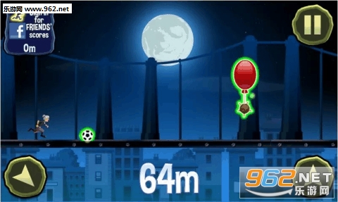 月黑风高的晚上一轮圆月挂在当中,老奶奶在月光下敏捷的跨过各种障碍,这样的场景看起来还是很武侠味道的。老奶奶不仅身手矫健,在跳跃的时候还会“嘿”的一声,听上去就知道是中气十足的武林高手。另外,背景音乐的节奏跟游戏配合得非常好,所以玩家刚开始玩的时候会有比较不错的体验。老奶奶的动作还是比较简单的,只有下滑和跳跃两种。按住跳跃键越久,老奶奶就跳得越高。在浮空的时候,老奶奶会摆出“专业”的轻功动作进行长距离的滑翔,给人非常飘逸的感觉。跟可控制跳跃高度不同的是,下滑的距离是固定的。