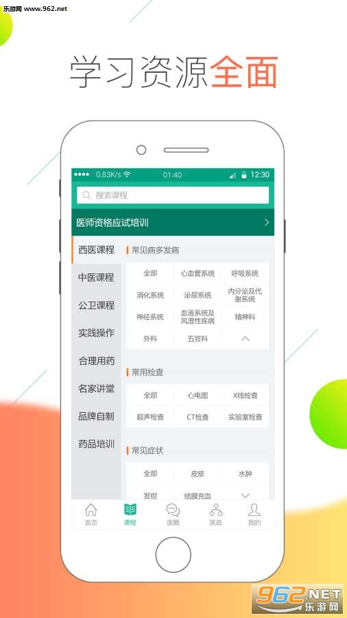 拥有西医诊疗、中医诊疗、实践操作、合理用药、应试教育、公共卫生等模块。