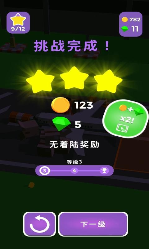 1、降落的越好的话那么玩家能够获得的金币奖励就越多的,在游戏中获得的分数就越多,可以使用金币去购买新的飞机;