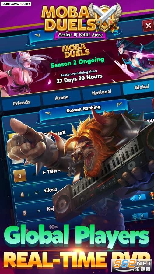 源自经典MOBA,英雄无养成,无付费属性,在公平的竞技舞台上靠技术和实力决定胜负,Play to Win but not Pay to Win。