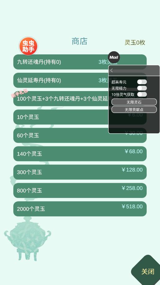 打开药王谷女修修炼手札存档版,进入首页后,点击左上角“虫虫助手”图标