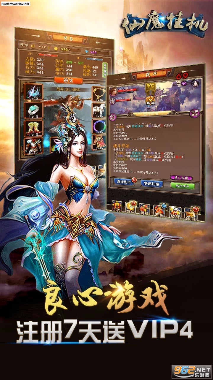 一款以仙魔修仙为题材的RPG放置类挂机游戏,从进入游戏就开始获取资源,通过培养佣兵,更换、强化、洗练、培养装备,尽可能的提示自己去战胜更强大的怪物获取更好的资源。参加战场、多人团战、多人副本体验玩家加护的乐趣。闯关禁地深渊留下自己的足迹让全服看到,在竞技场战胜其他玩家称霸自己的服务器~