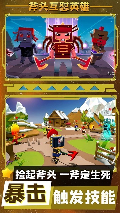 2、竞技对战:斧头互怼英雄这是一款竞技对战类型的游戏。玩家需要与敌人展开激烈的战斗。