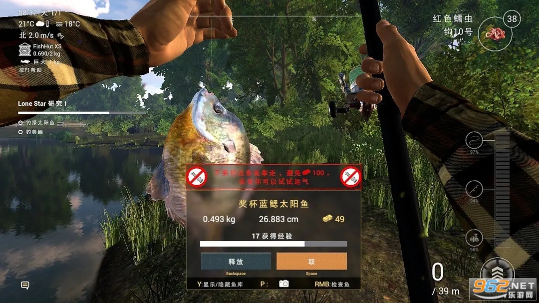 钓到鱼还可以拍照,当然还是要用内置的f12截图。
