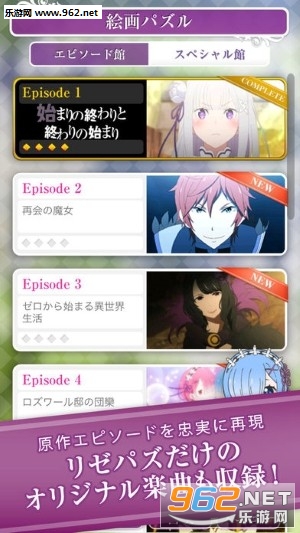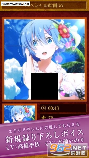 《Re:从零开始的异世界生活Puzzle Collection》是由Steins Inc.出品的一款益智解谜游戏,是动画《Re:从零开始的异世界生活》的首款官方手机游戏,收录了超过100枚TV动画本篇名场景,并有全新录製的语音,玩家可以与女主角「爱蜜莉雅」共同解谜。