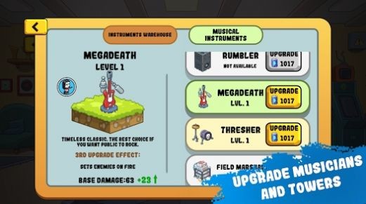 摇滚英雄塔防是一款好玩的策略塔防游戏,来这里能够感受好玩的也音乐塔防乐趣,来这里扮演摇滚英雄,利用自己的音乐才华进行冒险,避免受到邪恶生物的攻击,游戏将音乐和对战结合,能够感受全新的挑战游戏,来这里有着各种意想不到的乐趣体验,快来试试吧!