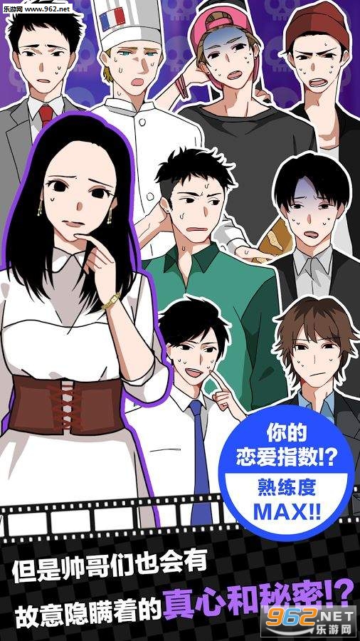 3八个不同的男性角色和一个隐藏角色(大概是以后会产出的角色...)游戏里还有真人视频图片语音哦