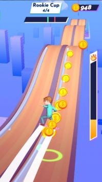 3、面对不同难度的挑战,沿着栏杆移动避开路人,展示不同的特技并获得积分。