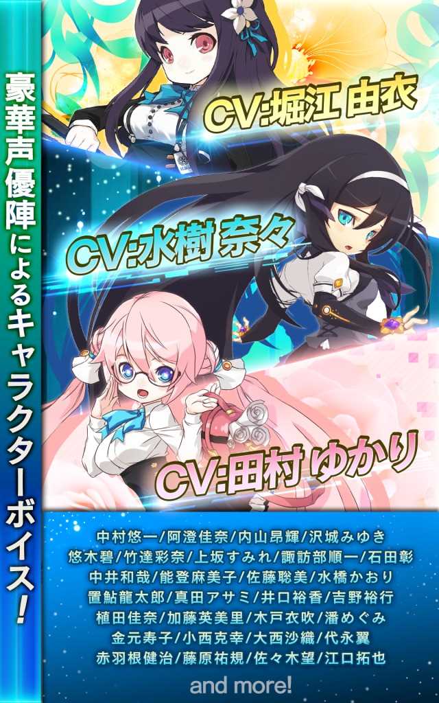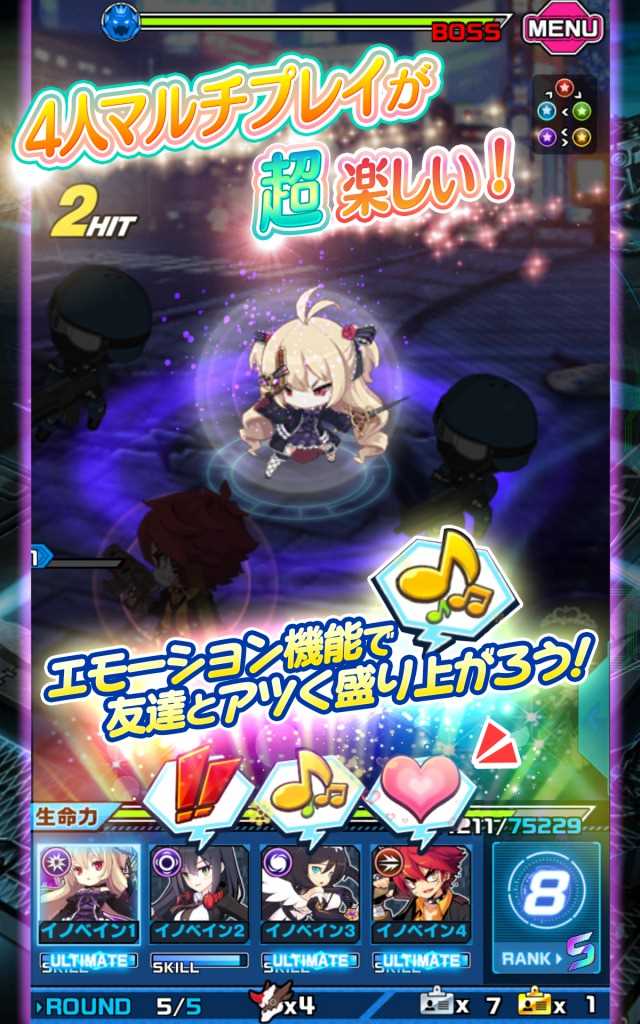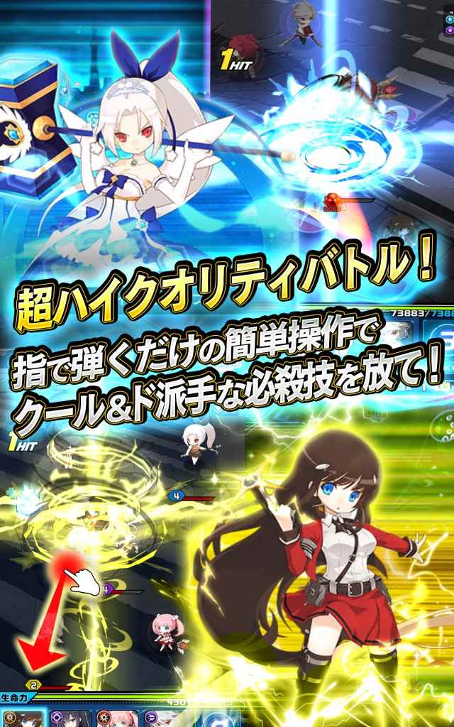 玩家只需要用手指拖动角色就能发挥必杀技和丰富多彩的攻击,最大可以支持 4 人同时在线。每个角色都附有自己的故事,可以当做迷你的小说进行阅读,并各自都有美丽的封面,给人像轻小说一样的感觉。