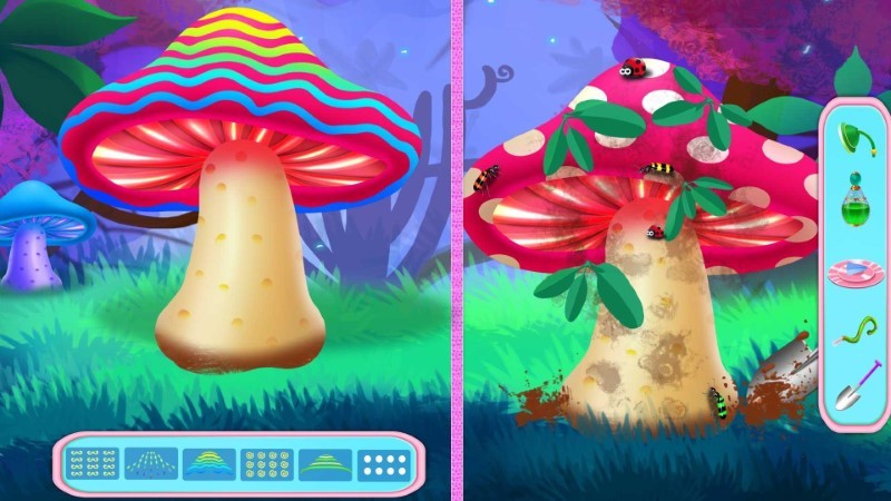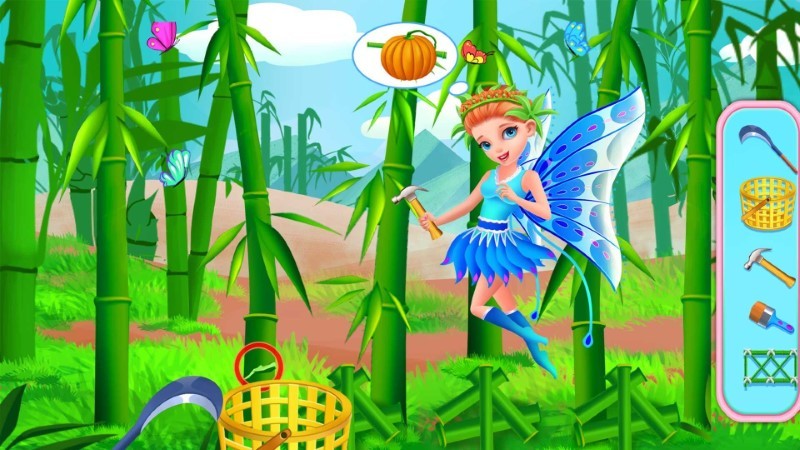 莉莉和娜娜两位小仙女生活在森林里。这天,莉莉在林中玩耍时发现了一个大西瓜,她想到了可以做个西瓜屋,于是喊来了娜娜一起搬运,后来又找到了可以做蘑菇亭的大蘑菇以及制作南瓜车的南瓜。