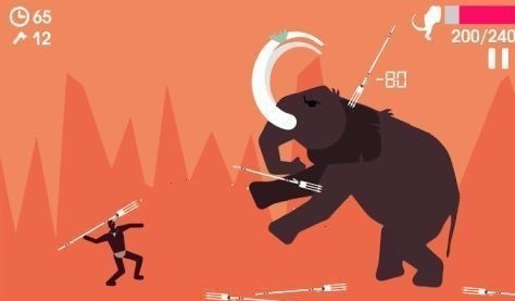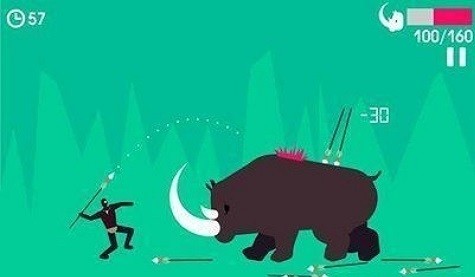 勇敢的野人是一款通过狩猎逐渐强大的冒险游戏,游戏中玩家作为野人角色使用长矛狩猎,猎杀敌人很讲究方式,根据猎杀伤害的的部位判断伤害,这里的猛犸象就是你需要猎杀的动物,不断的升级你的武器,变得更加的强大,快来试试这款游戏吧!