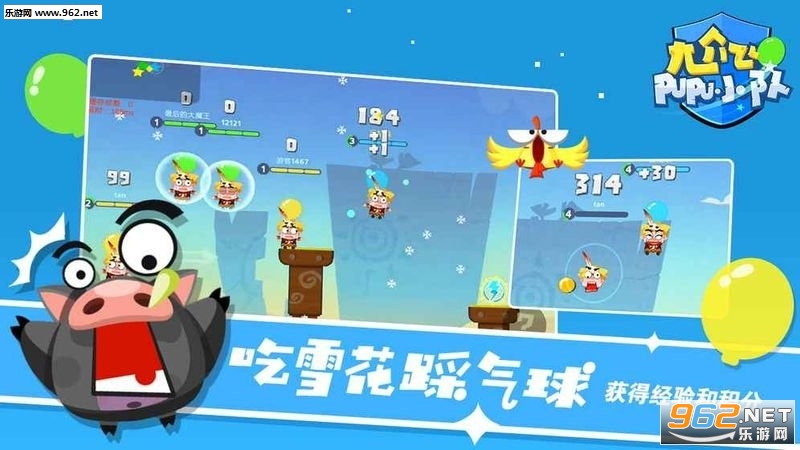 这款游戏讲究真实的碰撞,有多种人物角色供你选择,这款游戏还拥有左右衔接无压力的穿屏模式,简单有趣,玩法丰富多彩,让你玩起来嗨个不停,想要体会一下在手机里面享受的踩气球的快感吗?赶快来尬飞噗噗小队吧!