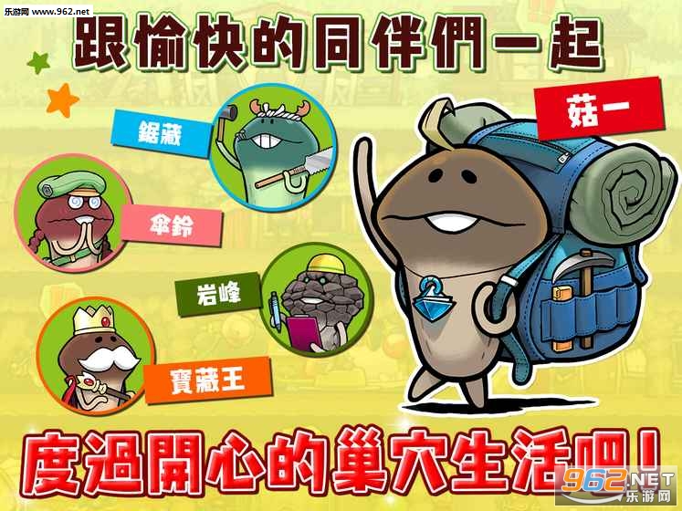 跟菇一还有他愉快的同伴们,一起度过开心的巢穴生活吧!