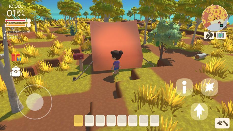 继续移动角色,当帐篷的颜色变成绿色,说明此位置可以搭建