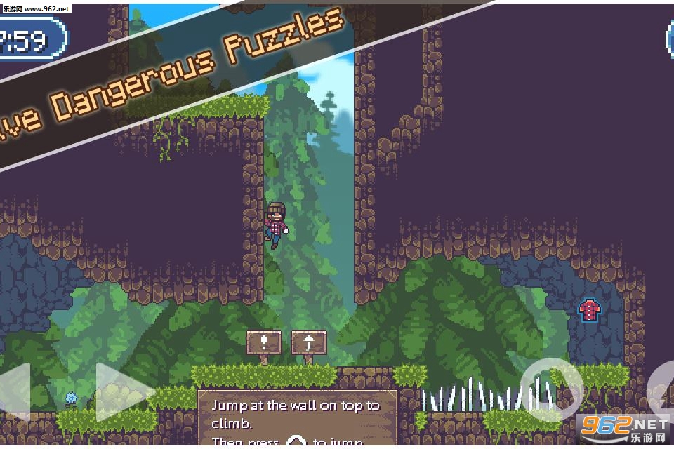 游戏共有30个关卡,每个关卡不同的障碍物,不同的地形设计,让整个游戏内容显得丰富多彩。游戏的玩法很简单,点控式操作模式,玩家只需要通过手指点击游戏中相应的图标来控制主角的移动。左下角的两个按钮分别控制人物的左右移动,右下角的两个按钮控制任务的跳跃和技能的施放(人物在游戏中可以隔空跳跃一次哦)。玩家需要帮助矮小的工人通过种种困难关卡,最后从海狸手中夺回木材。