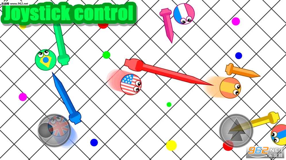 1、经典的IO玩法为了争夺彩色的小球而不断作战;