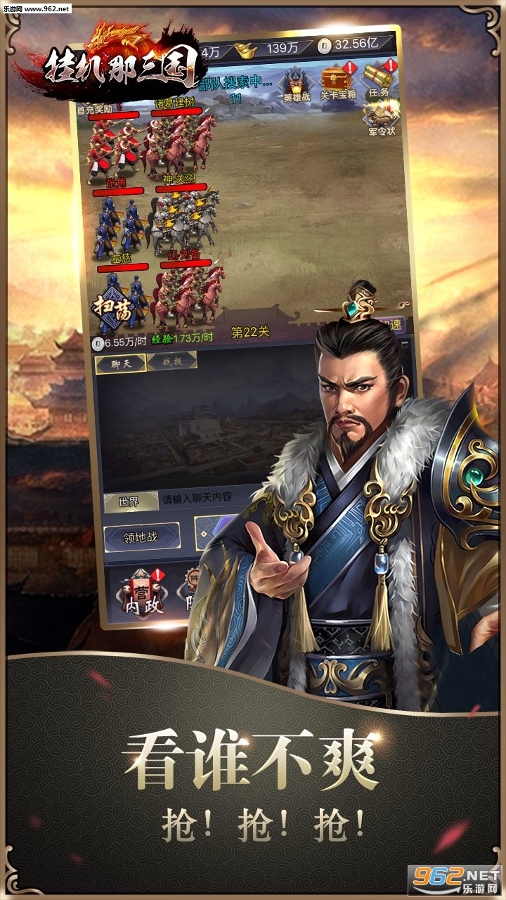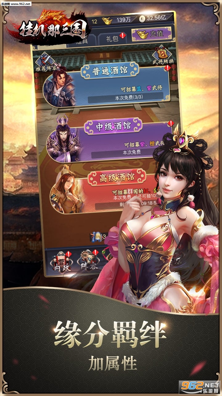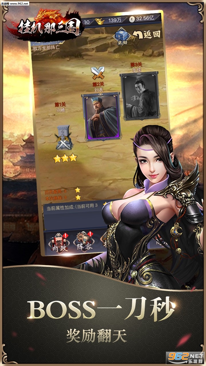 首款挂机类三国卡牌网游,挂机就送橙将,经验,银币等大量奖励。
