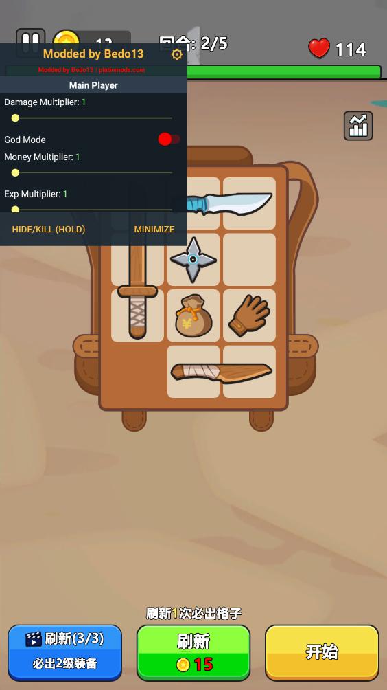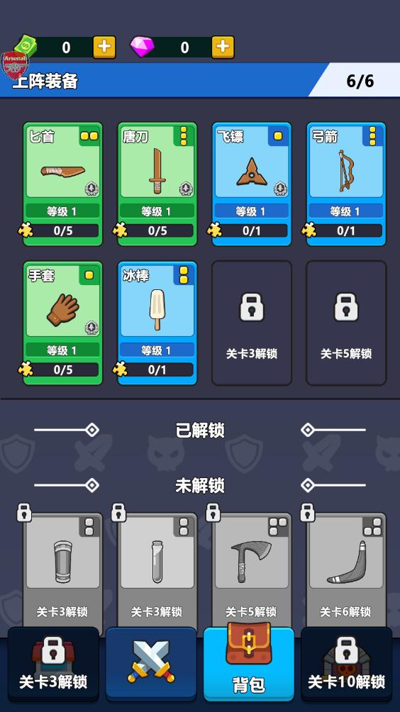 将下方的武器摆放到上方的格子里,装入背包,进入战场