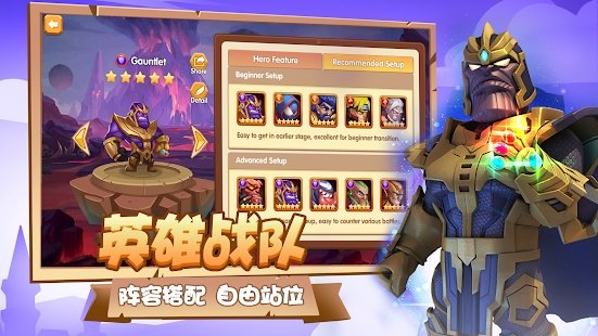 2、召唤收集英雄,搭配英雄阵容,调整英雄站位,不断摸索尝试,打造适合不同玩法的最强英雄战队。