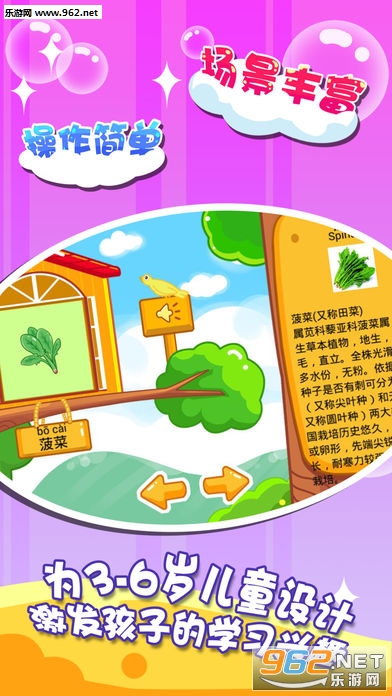 学学乐:通过一幅幅生动有趣的蔬菜卡片加上可爱的童声发音,教会宝宝认识各种常见蔬菜。