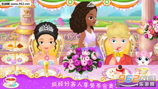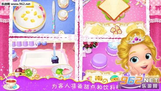 点击按钮开始接待客人吧。向左滑动屏幕,来到餐桌旁,轻点客人头上气泡,根据提示制作相应的茶点,完成后,将茶点拖入盘中,客人们便可享用了。哇哦~看看这些空空的点心架和果汁壶就知道茶点是多美味,多受欢迎了,快来再做一些吧!