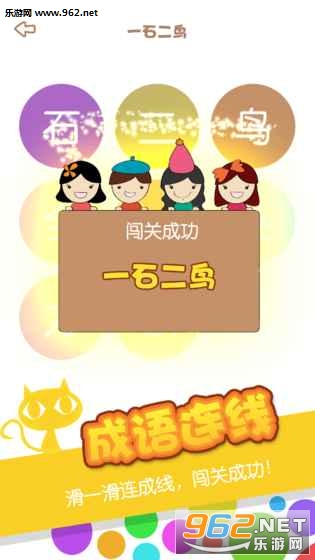 消灭成语 聪明如你,这么多成语来消灭,还等什么? 成语游戏+新玩法,挑战你的智力哦! 和成语有关的游戏。中国成语博大精深,可是你未必全知道,玩一玩这个游戏,你就按涨知识咯!正确的顺序把成语找出来连成一条线。答对了,进入下一关。消灭成语,快乐的玩,快乐的学! 玩法 每一关出现一定个数的成语,顺序打乱。玩家找出成语,按正确的顺序连接起来,即可进入下一关。